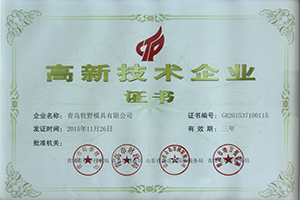 青島牧野模具有限公司獲得青島市科學技術局、青島市財政局、山東省青島市國家稅務局、青島市地方稅務局聯(lián)合頒發(fā)的高新技術企業(yè)證書;