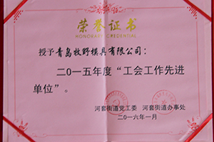 青島牧野模具有限公司獲得青島紅島經(jīng)濟區(qū)二〇一五年度企業(yè)工會工作先進單位;