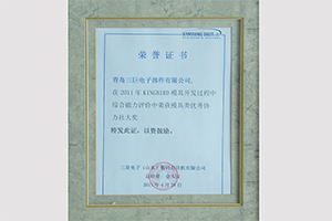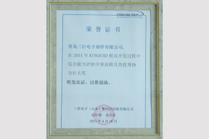 青島三巨電子部件有限公司在三星電子(山東)數(shù)碼打印機有限公司舉辦的KINGBIRD模具開發(fā)過程中綜合能力評價獲得模具類優(yōu)秀協(xié)力社大獎;